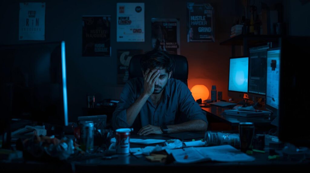 Then the buzz dies. Fast. The air goes heavy, your chest hollow. That god-mode feeling rots into shame. You stare at the same clean desk that felt holy an hour ago and it just looks stupid now — a crime scene of wasted hype. You tell yourself you’ll try again tomorrow, like every addict promising one last hit. But you won’t. You’ll scroll, you’ll “research,” you’ll drown in another grind set sermon until your brain feels numb enough to call it progress. You’ve wired yourself to chase sparks, not fire — the thrill of almost starting instead of the grind of finishing. Motivation isn’t progress; it’s designer procrastination. The only drug you can brag about while it quietly eats your spine.